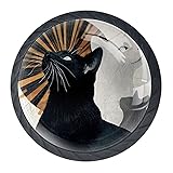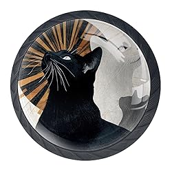 Diusye 4 Pack Dresser Drawer Cabinet Knobs Cats Looking Up Black Round Drawer Knob Pull Handle with Screws for Kitchen Wardrobe Cupboard Furniture Decor