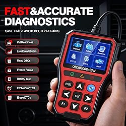 【Comprehensive Diagnostic Capabilities】The ASIOUPART OBD2 scanner allows you to read and clear Diagnostic Trouble Codes (DTCs), monitor live data including RPM and engine temperature, and access I/M readiness status. Ideal for car enthusiasts and DIY mechanics, this tool provides real-time insights into your vehicle's health, enabling you to address issues before they escalate. 【User-Friendly Design】Featuring a large 2.8-inch color screen with adjustable brightness, the OBD2 scanner car diagnostic tool ensures easy visibility in various lighting conditions. The intuitive interface with F1 &F2 custom shortcut keys enhances user experience, allowing quick access to critical functions like reading codes and I/M readiness. Additionally, audible alerts and a clear indicator light simplify fault detection and diagnosis. 【Robust and Durable Construction】 Built to handle the rigors of everyday use, this OBD2 car code reader features a sturdy design with a flexible, thick cable and a silicone protective cover. Weighing only 1.77 pounds and measuring compactly, it’s easily portable and can be conveniently stored in your garage or vehicle, ensuring it’s always at hand when you need it. 【Wide Compatibility and Language Support】This OBD2 scanner is compatible with approximately 99% of vehicles manufactured after 1996 in the U.S., 2000 in Europe, and 2005 in Asia. It supports multiple OBDII protocols, ensuring versatility across different car brands and models. Plus, with support for 25+ languages, users worldwide can enjoy seamless operation tailored to their preferences. 【86,100 DTC Lookup】Equipped with a built-in DTC lookup library of over 86,100 codes, this OBD2 scanner car code reader helps you quickly identify and resolve issues without searching for definitions online. If you are looking to replace or upgrade an existing car code reader, this code reader is an excellent option. 【One-Click Battery Health Check】Our exclusive one-click BAT battery diagnostic feature continuously monitors voltage and health status, visualizing potential risks to prevent unexpected failures. This car diagnostic scanner is your guarantee for worry-free travel and driving safety. Additionally, the OBD2 code reader for cars and trucks offers advanced diagnostics, including testing of O2 sensors and EVAP systems, precisely pinpointing the root causes of abnormal fuel consumption and emission faults. 【Lifetime Free Updates:】Stay current with the latest diagnostic technology! This OBD-II scanner comes with free lifetime updates to ensure you have access to the newest features, recording systems, and error codes, enhancing its longevity and effectiveness over time.