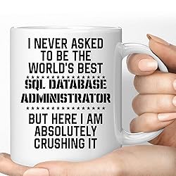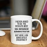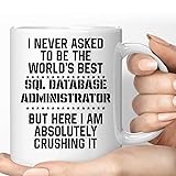 Gift Idea Funny Gift for Sql Database Administrator, I Never Ask To Be the World's Sql Database Administrator, Present for Coworkers 11 Oz White Ceramic Coffee Mug