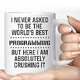 Humorous Gift Idea Funny Gift for Programming, I Never Ask To Be the World's Programming, Present for Coworkers 11 Oz White Ceramic Coffee Mug