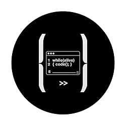 A simple code window sits between large bracket shapes with the line while(alive) { code(); } displayed in bold text, all in a clean black and white layout that highlights the endless coding loop and keeps every symbol easy to read at a quick glance. Designed for programmers, software developers, IT students and tech fans who enjoy clever code jokes and simple syntax humor; suitable for long dev sessions, office life, study days, hackathons, game nights and everyday routines. Adhesive backing attaches the PopGrip to your case or device. Will not stick to silicone, leather, waterproof, or highly textured cases. Works best with smooth, hard, plastic cases. Not compatible with wireless charging Printed top is swappable with other compatible PopGrip models. Just press flat, turn 90 degrees until you hear a click and remove to swap.