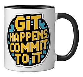 When git happens, commit to the chaos. A clever nod to developer or programmer at work. 11-ounce ceramic mug is dishwasher and microwave-safe, lead and BPA free Features glossy finish with accent colors on interior, handle, and rim of two-tone designs