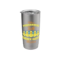 When Programmers Talk Rubber Ducks Listen - Funny joke for computer geeks & nerds. In software engineering, rubber duck debugging is a method of debugging code. Software-developers explain the source-code to a rubber duck to find a bug in the code. Don't despair when your program has an error. Take a rubber duck & this shirt and start explaining and describing. You will find the source of error very fast and then you can start testing your computer program again. Gift for a computer science graduate. Dual wall insulated: keeps beverages hot or cold Stainless Steel, BPA Free Leak proof lid with clear slider