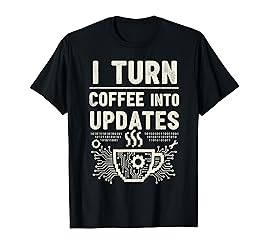 - I Turn Coffee Into Updates funny programmer design for developers, coders, software engineers, computer geek, helpdesk, system admins, IT support, and tech geeks who live on coffee and turn caffeine into code, updates. Perfect nerd humor style.