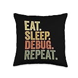 Eat Sleep Debug Repeat Funny Retro Programmer Coding Throw Pillow