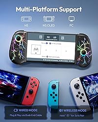 Ergonomic Grip for Handheld Play: Designed for comfort, this Switch controller features an ergonomic grip that fits naturally in your hands, reducing fatigue during long gaming sessions at home or on the go Precision Control with Hall Joystick: Hall Effect joystick ensures smooth, accurate movement with no drift or dead zone; Combined with responsive digital triggers, this Wireless Switch Controller delivers reliable control in every game genre Easy Connection & Stable Performance: Quick Bluetooth pairing—hold HOME for 3 seconds to connect; One-key wake-up lets the Switch remote instantly reconnect for smooth, stable, and lag-free gaming Custom Gaming with Turbo & Macro: Enjoy manual/auto Turbo at 3 speeds plus advanced macro programming via the M button; This joypad/gamepad helps execute combos easily and improves efficiency in fast-paced games RGB Effects & Perfect Gifts: Eye-catching RGB joystick lights with multiple modes, foldable kickstand, and game card storage make this Switch controller both fun and practical—great gifts for Switch fans, families, and friends