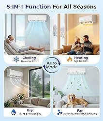 【Year-Round Performance】This 17000 BTU mini split ac/heating system operates efficiently from 5°F to 122°F. Equipped with a crankcase heater and high‑efficiency compressor, it delivers reliable heating even at -4°F, preventing frost and ice buildup for consistent winter performance, making this mini split heat pump a versatile solution for any climate. 【Wide-Coverage 4D Airflow】This mini split air conditioner features 4D auto-swing louvers that move vertically and horizontally, circulating air evenly throughout your space. With 6 adjustable fan speeds, this ductless mini split ac/heating system effectively adapts to various room layouts for consistent comfort. 【High-temp Self-Cleaning】This mini split ac/heating system features an easily removable and washable filter for simple maintenance. The indoor unit could activate a 131°F (55°C) high-temperature self-cleaning cycle to help maintain fresh, well-conditioned airflow while keeping upkeep effortless. 【Smart Control System】 Manage all functions via the included remote, including the IFEEl mode that senses temperature at your location. The LED display can be turned off for undisturbed sleep, while the 24-hour timer and lock offer convenience and safety. This minisplit AC/heating system puts intelligent control in your hands. 【Energy-Efficient Inverter】Using eco-friendly R32 refrigerant, inverter technology and AHRI-certified performance, this ductless mini split ac/heating system reduces energy consumption by up to 30% annually when used in ECO mode. Lower your electricity bills while staying comfortable with this efficient mini split heat pump. 【Ultra-Quiet Operation】 With noise levels as low as 29dB in sleep mode, this mini split air conditioner runs quietly enough for bedrooms. Even at higher settings, it maintains a modest 40dB, ensuring peaceful rest without disruptive operational sounds.