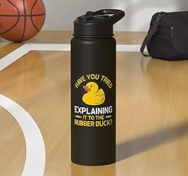Programming Debugging Tool design. If you use a Rubber Duck for debugging your code, this Have you tried to explain it to the Rubber Duck Design perfect for you! Everyone knows it,Everybody writes bugs and sometimes a Programming Duck can help you to fix problems. This funny rubber duckie Design is ideal for Programmers, Developer, Software-Developer, Coder, Nerds, Rubber Duck, geeks Collectors, Dad and Mothers. Dual-wall insulated stainless steel construction keeps beverages hot or cold, dishwasher safe and BPA free Leak-proof flip lid includes BPA free plastic drinking straw