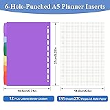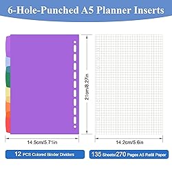 A5 6 ring notebook binder fit for A5 6-hole refill paper A5 6 holes planner inserts kit. A5 refill paper and binder dividers