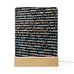 EOQIFJM Programmer Computer Code Square Wooden Base Small Night Light, Bedroom Night Light