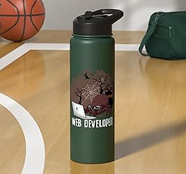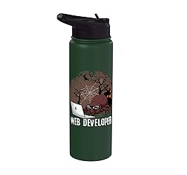 Show your expertise with this funny "Web Developer" design with a spider working on the laptop with spooky background, that makes it perfect for computer programmers, and software developers, who create and maintain websites and digital products. Make your programmer co-worker, dad, mom, aunt, or uncle, laugh with this funny Web Developer design that is ideal to wear at work whether at home or in the office. Also a great outfit for Trick or Treat or Halloween. Dual-wall insulated stainless steel construction keeps beverages hot or cold, dishwasher safe and BPA free Leak-proof flip lid includes BPA free plastic drinking straw