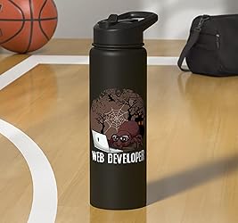 Show your expertise with this funny "Web Developer" design with a spider working on the laptop with spooky background, that makes it perfect for computer programmers, and software developers, who create and maintain websites and digital products. Make your programmer co-worker, dad, mom, aunt, or uncle, laugh with this funny Web Developer design that is ideal to wear at work whether at home or in the office. Also a great outfit for Trick or Treat or Halloween. Dual-wall insulated stainless steel construction keeps beverages hot or cold, dishwasher safe and BPA free Leak-proof flip lid includes BPA free plastic drinking straw