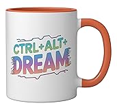 CTRL ALT DREAM Motivational Coding Tech Geek IT Nerd Gamer Ceramic Mug, Orange/White