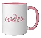Coder Girl Pink Retro Programmer Software Engineer Ceramic Mug, Pink/White