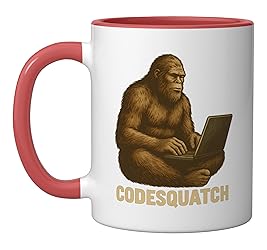 Codesquatch Funny Bigfoot Developer Coding Ceramic Mug, Red/White