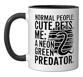 Green tree python design for a passionate green tree python owner or green tree python breeder. 11-ounce ceramic mug is dishwasher and microwave-safe, lead and BPA free Features glossy finish with accent colors on interior, handle, and rim of two-tone designs