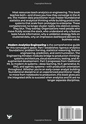 - Modern Analytics Engineering guides data practitioners from analytical foundations to production AI systems. The book addresses a critical gap: professionals who can build analytically sound work in notebooks but struggle to deploy it reliably, scale it sustainably, or reason about intelligent systems in production. Across 14 chapters and 3 bridge modules, readers develop both the statistical rigor and engineering mindset required for systems that organizations depend on. Part 1 covers analytics foundations including problem framing, causal reasoning, feature engineering, and statistical validation. The Bridge modules transform practitioners from exploratory coders to service oriented engineers through pipeline architecture, data contracts, and MLOps infrastructure. Part 2 addresses intelligence systems: machine learning, deep learning, NLP, large language models, retrieval augmented generation, and agentic AI with human oversight. Written for data scientists, ML engineers, analytics engineers, and technical leaders, this book provides the frameworks to build systems that run reliably at scale while developing the judgment to deploy AI responsibly.