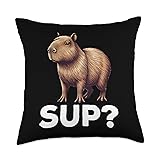 Sup? Funny humor design for a capybara lover who loves animals or rodents like capybaras. This design has a funny quote related to capybaras. Great for an animal lover who likes capybaras. 100% spun-polyester fabric Double-sided print Filled with 100% polyester and sewn closed Individually cut and sewn by hand Spot clean/dry clean only
