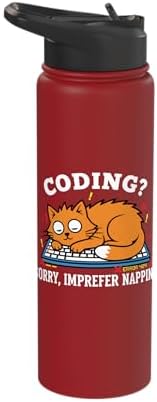 Funny Cat Coding Error 404 Napping Developer Programmer Pun Stainless Steel Insulated Water Bottle