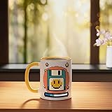 You tap straight into pure Nostalgie-Mood with this retro internet pixel look, bringing back slow loading bars, floppy disks and chunky cursors, perfect if you live for old web aesthetic and classic tech nerd vibes. You show everyone that buffering is a lifestyle, not a bug, with the Floppy Disk slogan surrounded by pastel pixel icons that speak to gamers, coders and online veterans who love quirky retro internet humor. 11-ounce ceramic mug is dishwasher and microwave-safe, lead and BPA free Features glossy finish with accent colors on interior, handle, and rim of two-tone designs