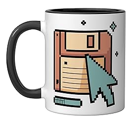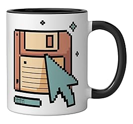 You tap straight into pure Nostalgie-Mood with this retro internet pixel look, bringing back slow loading bars, floppy disks and chunky cursors, perfect if you live for old web aesthetic and classic tech nerd vibes. You show everyone that buffering is a lifestyle, not a bug, with the Floppy Disk slogan surrounded by pastel pixel icons that speak to gamers, coders and online veterans who love quirky retro internet humor. 11-ounce ceramic mug is dishwasher and microwave-safe, lead and BPA free Features glossy finish with accent colors on interior, handle, and rim of two-tone designs