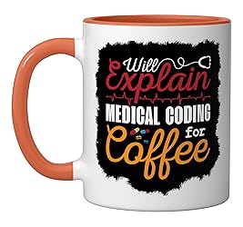 You are looking for an awesome coder outfit? Then is this funny medical coder or medical coding design the right one. It's a great idea for assistant or programmer who love their job. Wear it proudly to work or in your free time. Get this now. This funny medical coder design for women and men who love their coding and programmer job. Show that you are a proud medical coder. On the medical coder motive is the quote Will Explain Medical Coding For Coffee. 11-ounce ceramic mug is dishwasher and microwave-safe, lead and BPA free Features glossy finish with accent colors on interior, handle, and rim of two-tone designs