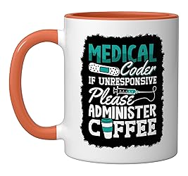 You are looking for an awesome coder outfit? Then is this funny medical coder or medical coding design the right one. It's a great idea for assistant or programmer who love their job. Wear it proudly to work or in your free time. Get this now. This funny medical coder design for women and men who love their coding and programmer job. Show that you are a proud medical coder. On the medical coder motive is the quote Medical Coder If Unresponsive Please Administer Coffee. 11-ounce ceramic mug is dishwasher and microwave-safe, lead and BPA free Features glossy finish with accent colors on interior, handle, and rim of two-tone designs