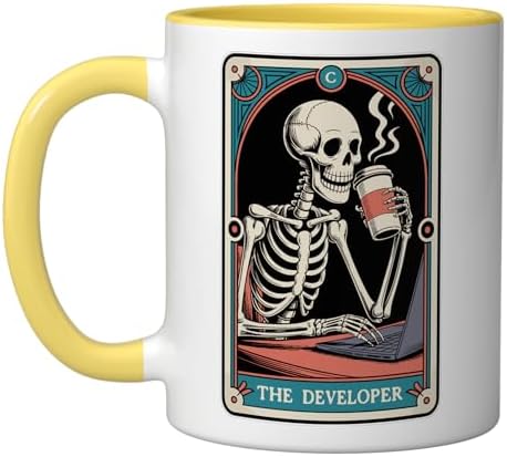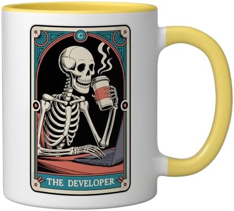 The Developer Tarot Card Programmer Software Engineer Coding Ceramic Mug, Yellow/White