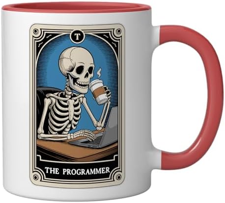 The Programmer Tarot Card Tech Developer Software Engineer Ceramic Mug, Red/White