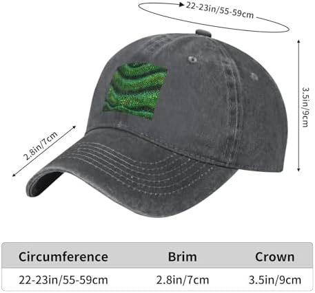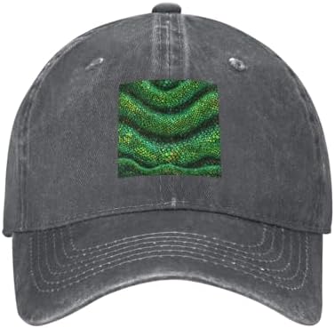 Elevate your style with the Black WHJSHOP Emerald python pattern Prints Adult Cowboy Baseball Hat, a versatile accessory crafted from 100% cotton washed denim fabric for a classic, rugged look. This hat features a moderate fabric thickness and a single-layer, unlined body, making it naturally breathable, lightweight, and dry for all-day comfort. Its classic curved brim and timeless design are not picky about face shape, offering a cool, stylish profile that suits everyone. The inner sweat-absorbing band ensures moisture-wicking and a snug fit, while the metal adjustable strap allows you to customize the circumference for a perfect fit. With a breathable hole design that prevents stuffiness and a durable construction that resists deformation, this hat is easy to carry and ideal for daily use, outings, sports, outdoor activities, and travel. Suitable for both men and women, it's a trendy, practical choice for any season. For care, it is recommended to hand wash gently to maintain its quality and shape.