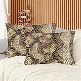 Snake Print Pillow Cases King Size Set of 2, Python Animal Print Pillow Shams, Scales Pillowcases 21x34 Inches, Soft Pillowslip with Hidden Zipper for Bed, Bedroom, Dorm Room