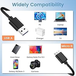 - USB 3.0 Micro B Cable, External Hard Drive Cable 5Gbps USB A to Micro B Data Transfer Cord for Seagate Toshiba WD My Passport Elements SSD, Camera, Laptop