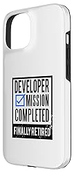 Developer accessories gift for workers. Funny Quote Retirement "MISSION COMPLETED FINALLY RETIRED" from working to retired. Perfect on their last days of work. Great Congratulations Retired accessories gift for Retirement men or women who are retiring from Developer accessories gift. Funny Quote Retirement "MISSION COMPLETED FINALLY RETIRED" from working to retired. Perfect on their last days of work. Great Congratulations Retired accessories gift for Retirement men or women who are retiring from their job. Two-part protective case made from a premium scratch-resistant polycarbonate shell and shock absorbent TPU liner protects against drops Printed in the USA Easy installation