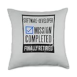 - Software-Developer accessories gift. Funny Quote Retirement "MISSION COMPLETED FINALLY RETIRED" from working to retired. Perfect on their last days of work. Great Congratulations Retired accessories gift for Retirement men or women who are retiring from their job.