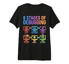 This design illustrates the 6 humorous stages of debugging, a relatable experience for any programmer or software developer. Features colorful computer monitors depicting common coding challenges and troubleshooting steps. Designed for coders, developers, IT professionals, and computer science students who understand the daily grind of fixing bugs. Express your passion for programming and software development with this unique graphic. Crafted from a unique 40 singles tri-blend fabric, offering a lightweight, ultra-soft feel Classic crew neck design with side-seam construction ensures both comfort and a flattering silhouette Lighter colors are semi-sheer