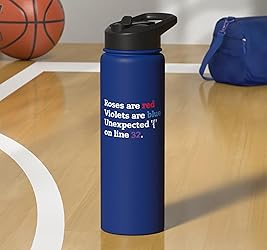 Express your coding humor with this witty 'Roses Are Red Violets Are Blue' phrase. Perfect for programmers who appreciate clever jokes and love to share a laugh with fellow coders. Stand out in the crowd and let your programming spirit shine. Ideal for developers who live and breathe code, and understand the struggle of unexpected errors in their coding journey. Dual-wall insulated stainless steel construction keeps beverages hot or cold, dishwasher safe and BPA free Leak-proof flip lid includes BPA free plastic drinking straw