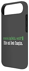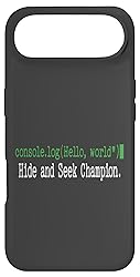 This design features the classic "Hello, world" code snippet with a missing semicolon, captioned "Hide and Seek Champion." It's a perfect inside joke for any coder who knows the pain of hunting down that one missing character that breaks everything. Great for software engineers, web developers, computer science students, and anyone in the tech industry. Perfect for hackathons, the office, or while working from home. A fun way to show off your geeky side and love for programming. Two-part protective case made from a premium scratch-resistant polycarbonate shell and shock absorbent TPU liner protects against drops Printed in the USA Easy installation