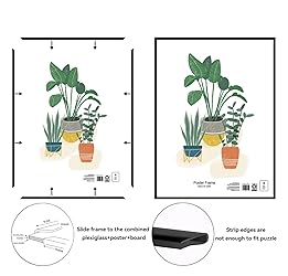 FRAME SIZE: 27" x 40" poster frame designed to display your favorite inspirational images, artwork, or posters in a sleek black finish DURABLE CONSTRUCTION: Features a four-piece lightweight design with a sturdy plastic front that protects your displayed content while keeping the frame easy to handle VERSATILE MOUNTING: Can be mounted to hang either vertically or horizontally, allowing you to customize the display orientation to suit your space and artwork CLASSIC DESIGN: Sleek and simplistic black frame style complements both home and office settings, making it ideal for any room or workspace decor EASY TO USE: Lightweight construction makes installation and repositioning simple while maintaining durability to securely hold your poster or print