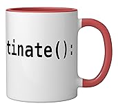 Many people procrastinate, but how would a Python program do that? One way would be to define a procrastinate function that simply passes execution as shown in the piece of code on this funny design for Python programmers. If you enjoy programming in Python and sometimes procrastinate, you may appreciate the subtle humor and give fellow Python programmers among your co-workers and friends a good laugh. 11-ounce ceramic mug is dishwasher and microwave-safe, lead and BPA free Features glossy finish with accent colors on interior, handle, and rim of two-tone designs