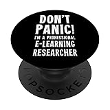 Great for researchers studying trends and effectiveness in e-learning methodologies. A funny and unique gift idea for education explorers - "Don't Panic! I'm A Professional E-learning Researcher." Adhesive backing attaches the PopGrip to your case or device. Will not stick to silicone,leather,waterproof,or highly textured cases. Works best with smooth,hard,plastic cases. Not compatible with wireless charging Printed top is swappable with other compatible PopGrip models. Just press flat,turn 90 degrees until you hear a click and remove to swap.