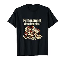 - A clean data science numbers graphic with a person hugging stacks of books and disks, built around the line Professional data hoarder. in an industrial grunge font. Rust brown and cream tones give it a sharp, high-contrast look that reads strong on dark gear. Made for analysts, statisticians, engineers, and anyone who loves datasets, storage, and learning.
