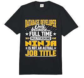 - Perfect to Wear in Your Office or Working Place & Show How You Love & Dedicated to Your Job. This Design Shows the Text "Database Developer Only Because Full-Time Multitasking Ninja Is Not an Actual Job Title". This Job Title Design Is the Perfect Gift Idea for Every Database Developer, Builder, Creator, or Programmer
