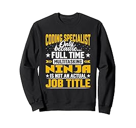 - Perfect to Wear in Your Office or Working Place & Show How You Love & Dedicated to Your Job. This Design Shows the Text "Coding Specialist Only Because Full-Time Multitasking Ninja Is Not an Actual Job Title". This Job Title Design Is the Perfect Gift Idea for Every Coding Specialist or Expert