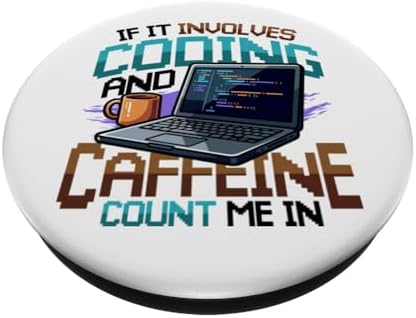 - This computer science themed design features a pixel art laptop and coffee mug with the quote 'IF IT INVOLVES CODING AND CAFFEINE COUNT ME IN'. Perfect for every software engineer, web developer, and tech geek.