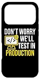 - Don't worry We'll test it in production - Great gift for the programmer, software developer, coder or anyone who loves funny coding jokes. For computer nerds & geeks who test their code in production. Don't despair when your program has an error, just test it in production. You will find the source code error very fast and then you can start testing your computer program again. Funny gift idea for a computer science graduate.
