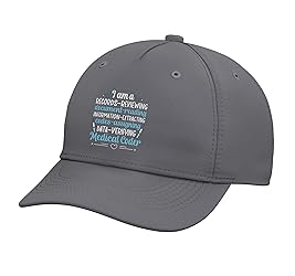 Great medical coding idea to show appreciation for the best medical coders. Perfect choice for a proud medical record coder during medical coder day. Classic five-panel structured baseball hat with high-profile crown Adjustable fit; one size fits most adults