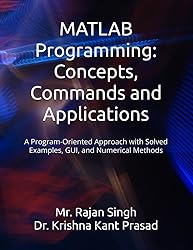 - MATLAB Programming: Concepts, Commands and Applications is a comprehensive, program-oriented textbook designed specifically for undergraduate students of Mathematics, Engineering, and Computer Applications.Written by experienced educators Rajan Singh and Dr. Krishna Kant Prasad, this book emphasizes concept clarity, step-by-step MATLAB programming, and practical implementation. Each topic is explained through worked examples, well-structured programs, outputs, and practice problems, making it ideal for classroom learning, laboratory work, and exam preparation.The book covers core MATLAB fundamentals along with plotting and graphics, string and file handling, symbolic computation, numerical methods, basic image processing, and GUI development. Special attention is given to numerical techniques and real-world applications, helping students bridge the gap between mathematical theory and computational practice.Designed to align with university syllabi, this book serves both as a course textbook and a self-study reference for learners aiming to build strong computational and problem-solving skills using MATLAB.