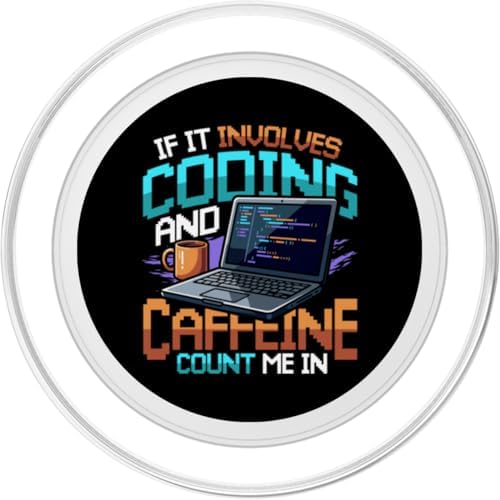 - This computer science themed design features a pixel art laptop and coffee mug with the quote 'IF IT INVOLVES CODING AND CAFFEINE COUNT ME IN'. Perfect for every software engineer, web developer, and tech geek.