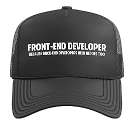 Back-end developers are the heroes. Use this to tease your back-end colleagues. Great for a software developer, coder, computer nerd, or engineer with a passion for programming or building websites. Wear it to the office. Five-panel trucker hat featuring structured foam front, mesh back, and high-profile crown Adjustable fit; one size fits most adults