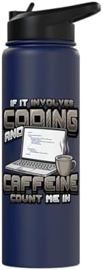 - This computer science themed design features a laptop displaying code next to a steaming coffee mug with the quote 'IF IT INVOLVES CODING AND CAFFEINE COUNT ME IN'. Perfect for every software engineer, web developer, and tech geek.